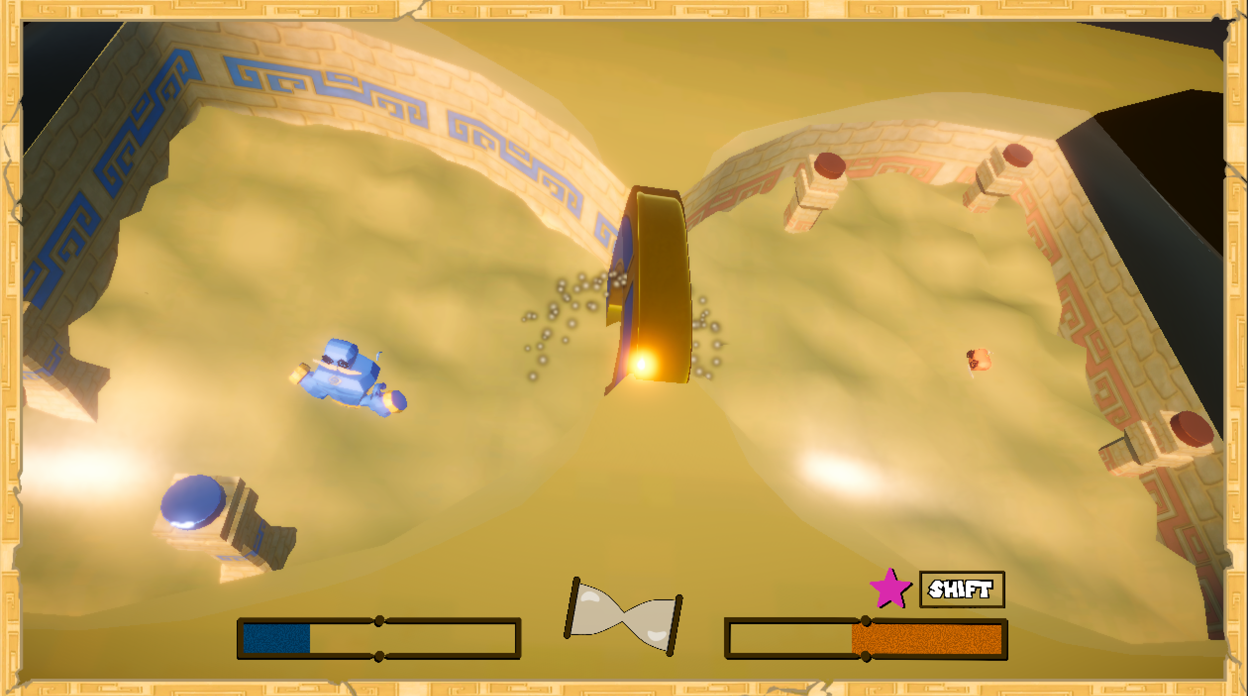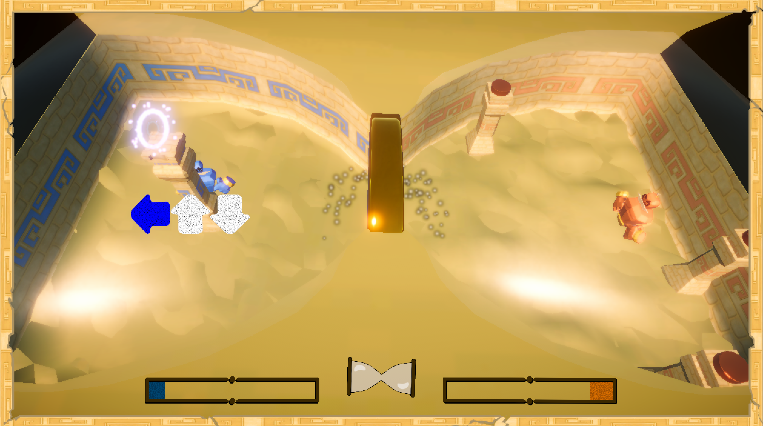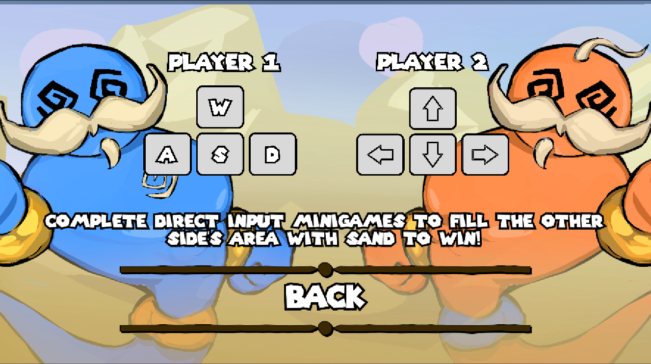 Sand Showdown is a fast-paced competitive survival game where mystical genies battle inside a massive hourglass, each racing to bury their rivals under enchanted sand. Players manipulate the flow by completing directional-input mini-games faster than their opponents, redirecting the sand to flood enemy chambers while scrambling to stay above the rising dunes in their own. Victory demands quick reflexes, clever strategy, and flawless mastery of the shifting sands.